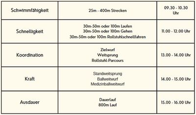 Die Möglichkeit, das Deutsche Sportabzeichen für Menschen mit und ohne Behinderung zu erwerben, wurde ebenfalls genutzt: acht motivierte Teilnehmerinnen und Teilnehmer zwischen 6 und 18 Jahren stellten sich der Herausforderung und legten am Vormittag das Sportabzeichen zunächst im angrenzenden Steinbacher Freibad (Schwimmnachweis) und im Anschluss im Stadion der Sportschule erfolgreich ab. Auch die Kinder-Rallye, die Kinder und Familien über das ganze Gelände und zu allen Sportstätten und Angeboten führte, fand großen Anklang.